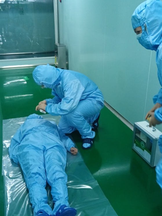 16时16分,演练正式启动。压片室三外走廊清洁员蔡雪琴发现同事晕倒后,立即呼叫相邻岗位组长蒋中强,并按照"第一时间报告、第一时间救护"原则启动应急程序。蒋中强迅速启动应急预案,组织蔡雪琴、向燕梅等4人将患者转移至安全区域,同时上报现场主管邓志国。救援行动组李琳携医药箱进对患者进行脉搏检测、呼吸道畅通检查等专业处置,实施初步救治。同时,疏散引导组杨龙迅速设立警戒区,维持现场秩序,保障救援通道畅通;摄像组全程记录,留存关键环节影响资料,以供后续分析;事故善后组同步完成现场清理及物资归位。16时19分,总指挥汤海兵协调将“患者”送医。演练现场各小组分工明确,配合紧密,40分钟内即完成从险情发生到善后总结的全流程演练。