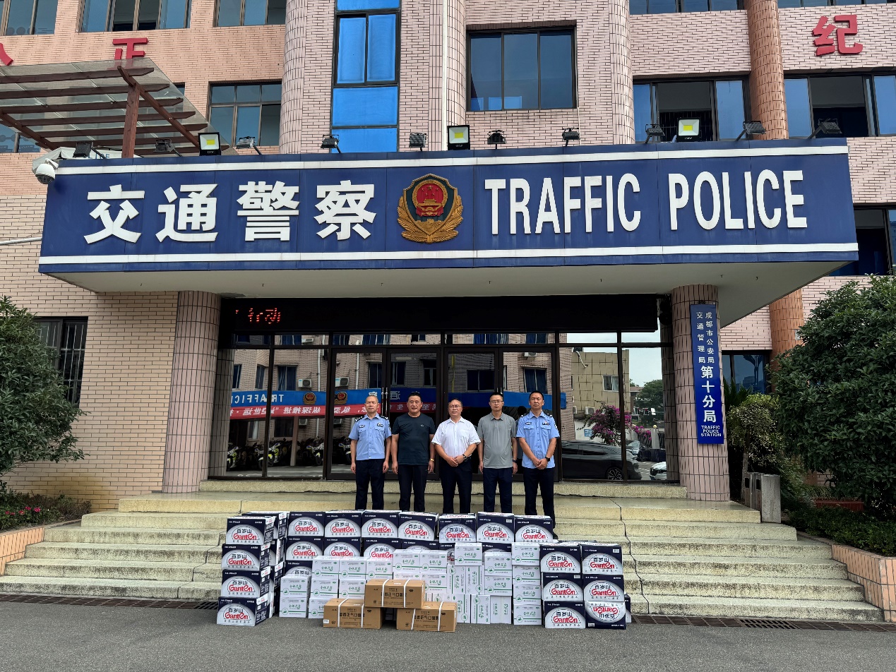 为表达对坚守岗位的交警同志的敬意与关怀。7月25日上午,新都基地罗成鑫副总经理带队到成都市交警十分局开展“送清凉”慰问活动。